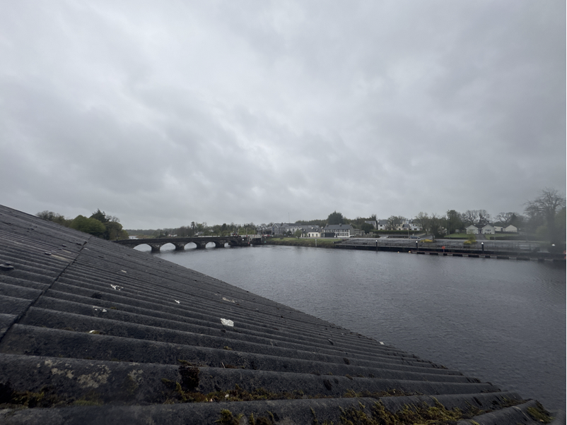 - Airflow slows down near the roof tiles, and the building across the way, which has a higher roof, also partially blocks the wind.